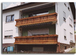Alte Verkleidungen abgebaut - Neue auf Maßgefertigte Leeb-Balkonverkleidungen und bestehende Unterkonstruktionen teilweise vom Bauherr selbst montiert.